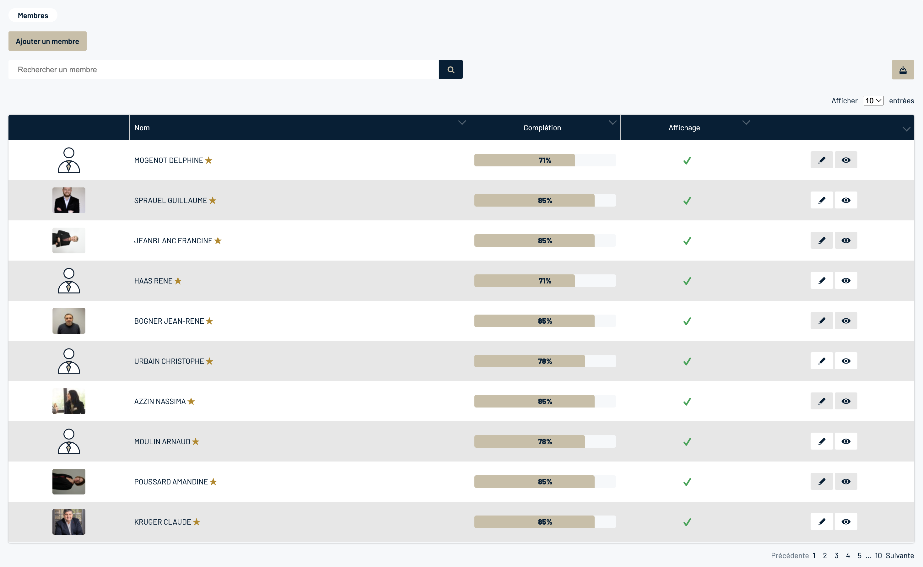 Le taux de complétion de chaque membre est indiqué. Si celui-ci n’est pas à 100%, c’est que l’intégralité des informations n’ont pas été complétées. Vous pouvez inviter votre membre à compléter ces informations via son espace membre, rubrique « Modifier mon profil ».