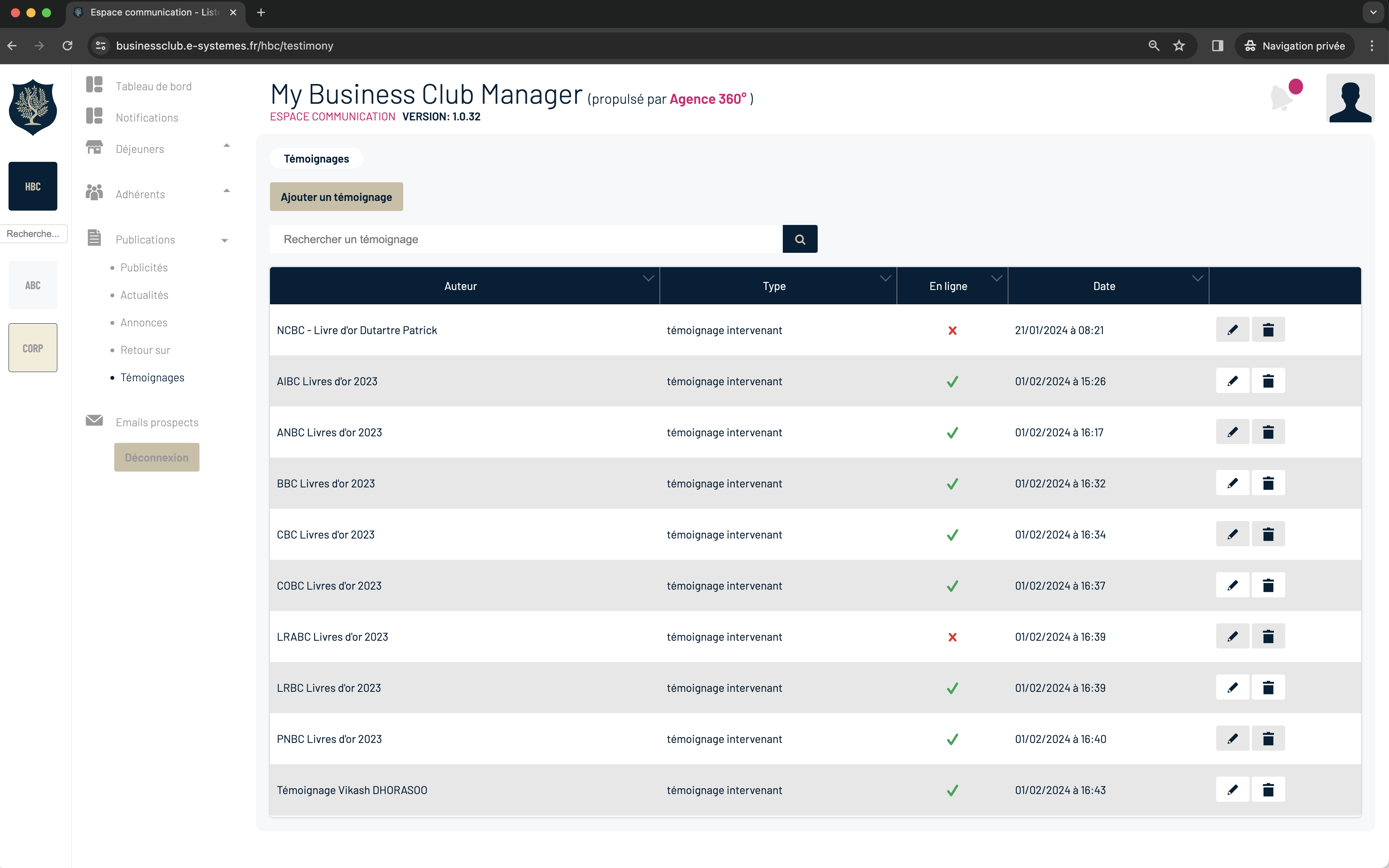 Cette rubrique vous permet de mettre en ligne le témoignage de vos membres via un article / photo qui sera visible sur votre site web.